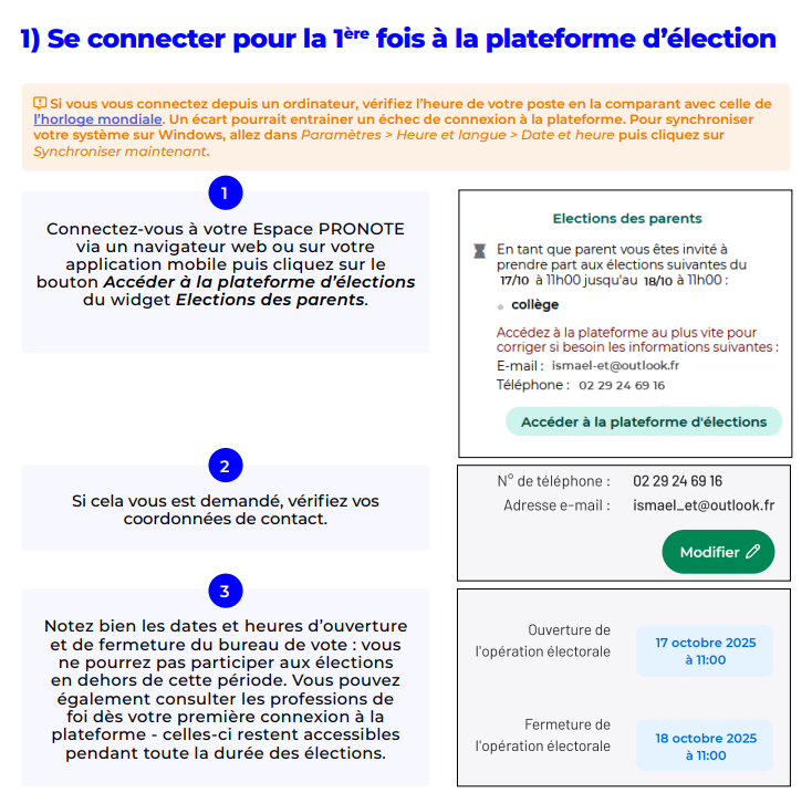 Les élections des représentants des parents d'élèves s’effectueront par voie électronique sur PRONOTE, conformément à l'arrêté n° 0157 du 2 juillet 2024, dans le respect de la protection des données personnelles et des principes fondamentaux qui commandent les opérations électorales.