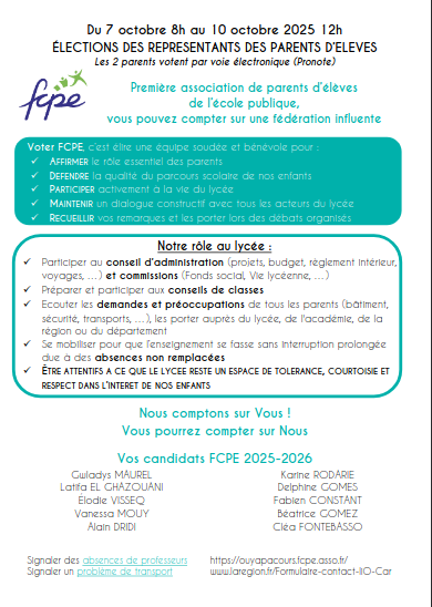 PROFESSION DE FOI LISTE FCPEÉlections des représentants des parents d'élèves 2025/2026 |